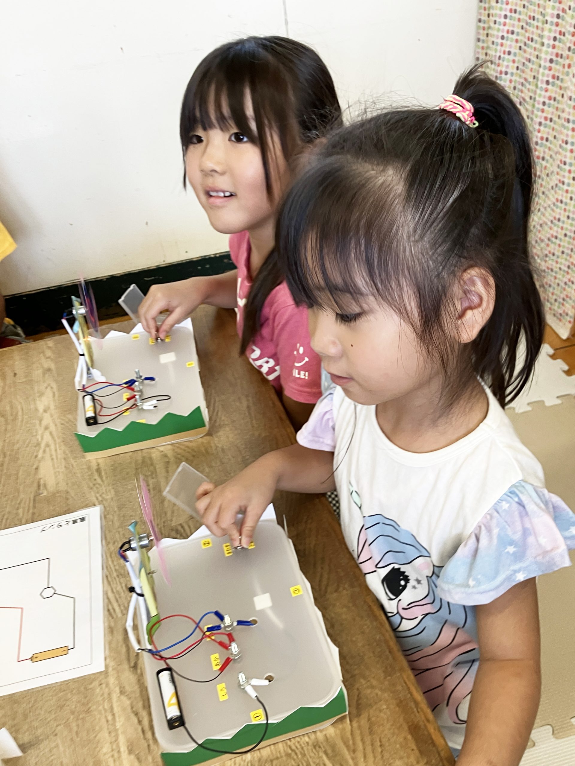 9月16日、レイモンド小牧保育園(愛知県小牧市)が小牧市の企業・株式会社翼電気さんからお声掛けいただき、はじめてのものづくり体験「電気実験」を行いました。